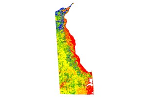 Description: <DIV STYLE="text-align:Left;"><DIV><DIV><P><SPAN>This digital product contains gridded estimates of depth to water (dtw) under dry conditions for Delaware. This work is the final component of a larger effort to provide estimates of water-table elevations and depths to water for the Coastal Plain portion of Delaware. Mapping was supported by the Delaware Department of Natural Resources and Environmental Control and the Delaware Geological Survey. These grids were produced with the same multiple linear regression (MLR) method as Andres and Martin (2005). Briefly, this method consists of: identifying dry, normal, and wet periods from long-term observation well data (Nc45-01, Ng11-01, Qe44-01); estimating a minimum water table (Sepulveda, 2002) by fitting a localized polynomial surface to elevations of surface water features (e.g., streams, swamps, and marshes); and computing a second variable in the regression from water levels observed in wells. A separate MLR equation was determined for dry, normal, and wet periods, and these equations were used in ArcMap v.9 (ESRI, 2004) to estimate grids of water-table elevations and depths to water. The grids have 30-m horizontal and 1-ft vertical resolutions. Grid world files and ground-water level observation data are in UTM-18N, 1983 projection in meters and elevations are in feet, NAVD 1988. Files are in ESRI, Inc., grid format. These data were combined from DGS Digital Data Products DP05-01, DP05-03, and DP05-04 Digital Water-Table Data for Sussex, Kent, and New Castle counties, Delaware, respectively. REFERENCES CITED Andres, A. S., and Martin, M. J., 2005, Estimation of the water-table surface for the Inland Bays watershed, Delaware: Delaware Geological Survey Report of Investigations No. 68, 20p. ESRI, 2004, ArcMap v. 9, Redlands, California. Sepulveda, N., 2003, A statistical estimator of the spatial distribution of the water-table altitude: Ground Water, vol. 41, p. 66-71.</SPAN></P></DIV></DIV></DIV>